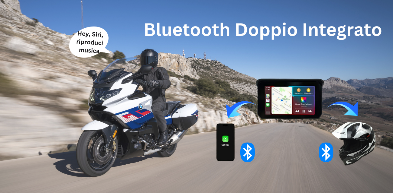 Associa facilmente il tuo casco o auricolare con Bluetooth al sistema CarPlay per godere di comunicazioni a mani libere, audio cristallino e connettività wireless. Che tu stia effettuando chiamate, ascoltando musica o seguendo le indicazioni GPS, questa funzione garantisce che tu rimanga connesso e intrattenuto senza compromettere la sicurezza.